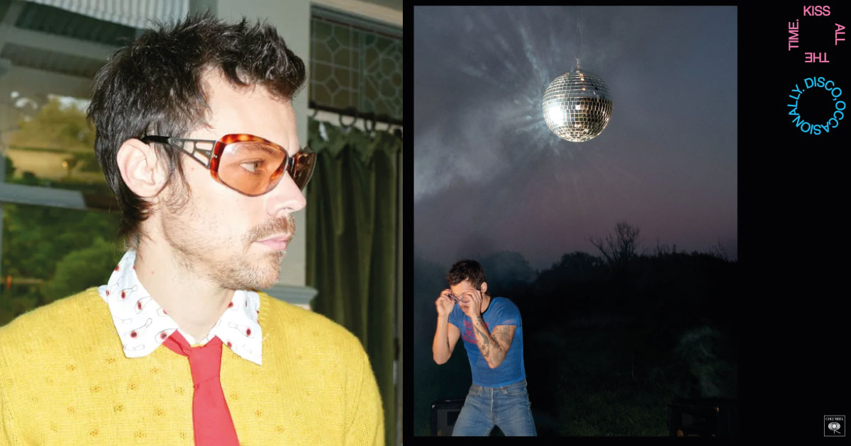 La imagen que acompaña el anuncio muestra a Styles bajo una bola de disco sobre un fondo oscuro, vestido con una playera azul, jeans y gafas de sol, un estilo que sugiere una mezcla de nostalgia disco y modernidad estética.